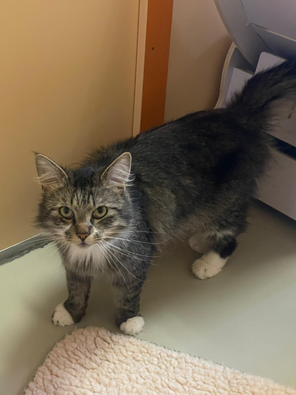 Unser schöner Langhaarmix Kater Mau kam im März 2025 als Fundtier zu uns ins Tierheim. Leider ungechipt und es meldete sich auch kein Halter, der ihn vermisst. Der junge Kater ist sehr menschenbezogen und eine wahre Schmusebacke, die mit ihrer hohen Piepsstimme ständig Aufmerksamkeit und Zuneigung einfordert.